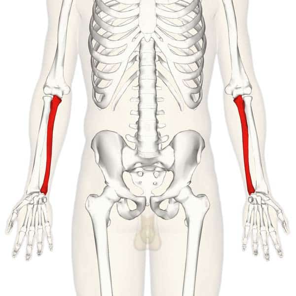 The ulna is a long bone in the forearm. It lies medially and parallel to the radius, the second of the forearm bones. The ulna acts as the stabilising bone, with the radius pivoting to produce movement. Proximally, the ulna articulates with the humerus at the elbow joint. Distally, the ulna articulates with the radius, forming the distal radio-ulnar joint. In this article, we shall look at the anatomy of the ulna – its bony landmarks, muscle attachments and clinical correlations. By Anatomography [CC-BY-SA-2.1-jp], via Wikimedia Commons Fig 1.0Overview of the anatomical position of the ulna in the upper limb. Pro Feature - 3D Model You've Discovered a Pro Feature Access our 3D Model Library Explore, cut, dissect, annotate and manipulate our 3D models to visualise anatomy in a dynamic, interactive way. Learn More Proximal Osteology and Articulation The proximal end of the ulna articulates with the trochlea of the humerus. To enable movement at the elbow joint, the ulna has a specialised structure, with bony prominences for muscle attachment. Important landmarks of the proximal ulna are the olecranon, coronoid process, trochlear notch, radial notch and the tuberosity of ulna: Olecranon – a large projection of bone that extends proximally, forming part of trochlear notch. It can be palpated as the ‘tip’ of the elbow. The triceps brachii muscle attaches to its superior surface. Coronoid process – this ridge of bone projects outwards anteriorly, forming part of the trochlear notch. Trochlear notch – formed by the olecranon and coronoid process. It is wrench shaped, and articulates with the trochlea of the humerus. Radial notch – located on the lateral surface of the trochlear notch, this area articulates with the head of the radius. Tuberosity of ulna – a roughening immediately distal to the coronoid process. It is where the brachialis muscle attaches. By TeachMeSeries Ltd (2025) Fig 2The bony landmarks of the proximal ulna. Shaft of the Ulna The ulnar shaft is triangular in shape, with three borders and three surfaces. As it moves distally, it decreases in width. The three surfaces: Anterior – site of attachment for the pronator quadratus muscle distally. Posterior – site of attachment for many muscles. Medial – unremarkable. The three borders: Posterior – palpable along the entire length of the forearm posteriorly Interosseous – site of attachment for the interosseous membrane, which spans the distance between the two forearm bones. Anterior – unremarkable. Distal Osteology and Articulations The distal end of the ulna is much smaller in diameter than the proximal end. It is mostly unremarkable, terminating in a rounded head, with distal projection – the ulnar styloid process. The head articulates with the ulnar notch of the radius to form the distal radio-ulnar joint. Clinical Relevance – Common Fractures of the Ulna The forearm is a common site for bone fractures. Here, we shall look at the common fracture types involving the ulna. A fracture of the ulna alone (not involving the radius) usually occurs as a result of the ulna being hit by an object. The shaft is the most likely site of fracture. In this situation, the normal muscle tone will pull the proximal ulna posteriorly. Less commonly, the olecranon process can be fractured. This is caused by the patient falling on a flexed elbow. The triceps brachii can displace part of the fragment proximally. The ulna and the radius are attached by the interosseous membrane. The force of a trauma to one bone can be transmitted to the other via this membrane. Thus, fractures of both the forearm bones are not uncommon. There are two classical fractures: Monteggia’s Fracture – Usually caused by a force from behind the ulna. The proximal shaft of ulna is fractured, and the head of the radius dislocates anteriorly at the elbow. Galeazzi’s Fracture – A fracture to the distal radius, with the ulna head dislocating at the distal radio-ulnar joint. By Jane Agnes [CC BY-SA 3.0], via Wikimedia Commons Fig 3Monteggia fracture of the radius and ulna Do you think you’re ready? Take the quiz below Pro Feature - Quiz The Ulna Question 1 of 3 Submitting... Skip Next Rate question: You scored 0% Skipped: 0/3 1800 More Questions Available Upgrade to TeachMeAnatomy Pro Challenge yourself with over 1800 multiple-choice questions to reinforce learning Learn More Rate This Article