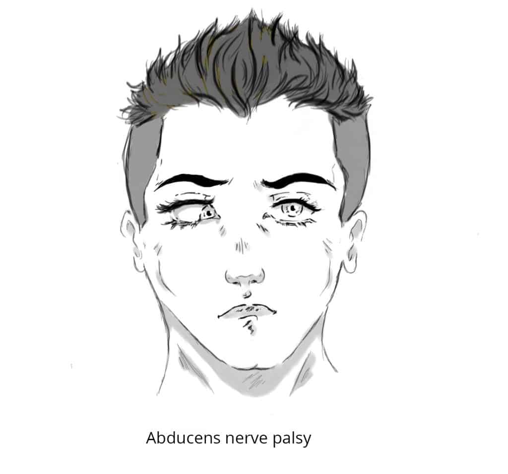 The abducens nerve is the sixth paired cranial nerve. It has a purely somatic motor function – providing innervation to the lateral rectus muscle. In this article, we shall look at the anatomy of the abducens nerve – its anatomical course, motor functions and clinical relevance. By TeachMeSeries Ltd (2025) Fig 1Schematic of the anatomical course of the abducens nerve. Pro Feature - 3D Model You've Discovered a Pro Feature Access our 3D Model Library Explore, cut, dissect, annotate and manipulate our 3D models to visualise anatomy in a dynamic, interactive way. Learn More Anatomical Course The abducens nerve arises from the abducens nucleus in the pons of the brainstem. It exits the brainstem at the junction of the pons and the medulla. It then enters the subarachnoid space and pierces the dura mater to travel in an area known as Dorello’s canal. At the tip of petrous temporal bone, the abducens nerve leaves Dorello’s canal and enters the cavernous sinus (a dural venous sinus). It travels through the cavernous sinus and enters the bony orbit via the superior orbital fissure. Within the bony orbit, the abducens nerve terminates by innervating the lateral rectus muscle. By TeachMeSeries Ltd (2025) Fig 2Ventral (anterior) surface of the pons. By TeachMeSeries Ltd (2025) Fig 3Coronal section demonstrating the contents of the right cavernous sinus. Motor Function The abducens nerve provides innervation to the lateral rectus muscle – one of the extraocular muscles. The lateral rectus originates from the lateral part of the common tendinous ring, and attaches to the anterolateral aspect of the sclera. It acts to abduct the eyeball (i.e. to rotate the gaze away from the midline). By TeachMeSeries Ltd (2025) Fig 4Lateral view of the extraocular muscles. Clinical Relevance Examination of the Abducens Nerve The abducens nerve is examined in conjunction with the oculomotor and trochlear nerves by testing the movements of the eye. The patient is asked to follow a point with their eyes (commonly the tip of a pen) without moving their head. The target is moved in an ‘H-shape’ and the patient is asked to report any blurring of vision or diplopia (double vision). Clinical Relevance Abducens Nerve Palsy Abducens nerve palsy can be caused by any structural pathology which leads to downwards pressure on the brainstem (e.g. space-occupying lesion). This can stretch the nerve from its origin at the junction of the pons and medulla. Other causes include diabetic neuropathy and thrombophlebitis of the cavernous sinus (in these cases, it is rare for the abducens nerve to be affected in isolation). Clinical features of abducens nerve palsy include diplopia, the affected eye resting in adduction (due to unopposed activity of the medial rectus), and inability to abduct the eye. The patient may attempt to compensate by rotating their head to allow the eye to look sideways. By TeachMeSeries Ltd (2025) Fig 4Right abducens nerve palsy, characterised by the resting position of the pupil in adduction. Do you think you’re ready? Take the quiz below Pro Feature - Quiz The Abducens Nerve (CN VI) Question 1 of 3 Submitting... Skip Next Rate question: You scored 0% Skipped: 0/3 1800 More Questions Available Upgrade to TeachMeAnatomy Pro Challenge yourself with over 1800 multiple-choice questions to reinforce learning Learn More Rate This Article