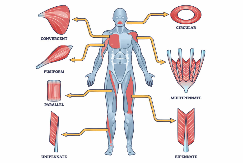 The study of muscle anatomy is essential for understanding movement, posture, and common musculoskeletal disorders. Given the large number of muscles in the human body, using a consistent method to learn their features is beneficial. In this article, we shall look at a six-part framework for describing muscles – site, shape, attachments, action, nerve supply, and blood supply. This structure can be applied to any skeletal muscle and forms the basis for effective anatomical learning. Department of Anatomy, University of East Anglia A 6-part framework for learning the anatomy of muscles Pro Feature - 3D Model You've Discovered a Pro Feature Access our 3D Model Library Explore, cut, dissect, annotate and manipulate our 3D models to visualise anatomy in a dynamic, interactive way. Learn More Site The site refers to the anatomical location of the muscle. This provides context for which region it influences and which joints it may act upon. Examples: The pectoralis major is a muscle of the anterior chest. The flexor carpi radialis lies in the anterior forearm. The gastrocnemius is located in the posterior leg. Shape Muscles exhibit a variety of shapes, which often reflect their function and fibre arrangement. Common muscle shapes include: Fusiform – thick in the middle and tapered at both ends (e.g. biceps brachii) Strap – long and thin with parallel fibres (e.g. sternocleidomastoid, rectus abdominis) Triangular – broad origin with fibres converging on a narrow insertion (e.g. pectoralis major) Circular – fibres arranged in a ring, usually around an opening (e.g. orbicularis oculi) Unipennate – fibres insert obliquely on one side of a central tendon (e.g. flexor pollicis longus) Bipennate – fibres insert obliquely into both sides of a central tendon (e.g. rectus femoris) Multipennate – multiple feather-like fascicles converging obliquely on a central tendon (e.g. deltoid) Adobe Stock, Licensed to TeachMeSeries Ltd Fig 2Muscle classification by shape Attachments Each muscle has a proximal attachment (closer to the midline of the body) and a distal attachment (further away). Identifying these bony attachments allows the resulting movements at a joint to be predicted. Sites of attachment are often used as landmarks in surgical and radiological procedures. Examples: The pectoralis major originates from the clavicle, sternum, and upper costal cartilages. It inserts into the lateral lip of the intertubercular sulcus of the humerus. The biceps brachii originates from the supraglenoid tubercle and coracoid process of the scapula. It inserts into the radial tuberosity. The sternocleidomastoid originates from the sternum and medial clavicle. It inserts into the mastoid process of the temporal bone. Action A muscle produces movement by acting across one or more joints. The action can usually be deduced by considering its attachments and the orientation of its fibres – as these determine the direction and type of pull exerted on the joint. Examples: The iliopsoas causes flexion at the hip joint. The quadriceps femoris extends the knee joint. The deltoid abducts at the shoulder joint. Nerve Supply Skeletal muscles are innervated by motor branches of peripheral nerves. Each muscle has a specific nerve supply, which facilitates voluntary contraction and coordination. Example: The median nerve supplies many muscles of the anterior forearm. The axillary nerve supplies the deltoid. The femoral nerve supplies the quadriceps femoris. Blood Supply Muscles receive oxygenated blood via one or more arteries, supporting metabolism and function. Example: The brachial artery supplies the biceps brachii. The profunda femoris artery supplies the adductor magnus. The posterior tibial artery supplies the gastrocnemius. Rate This Article