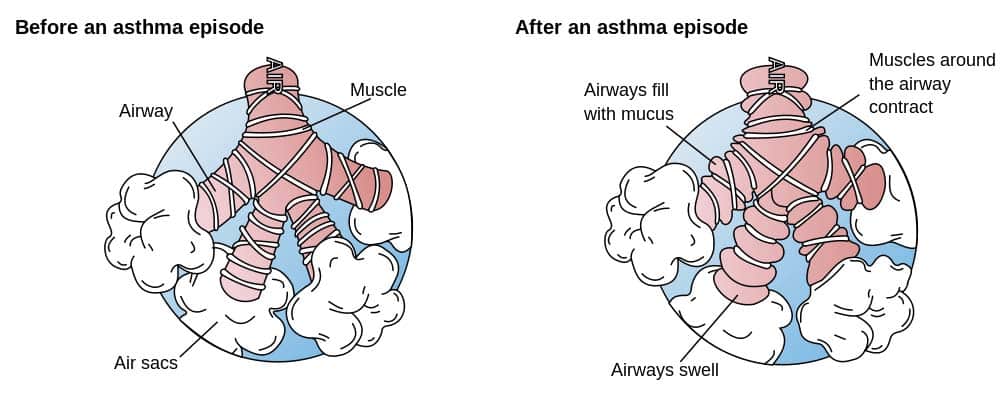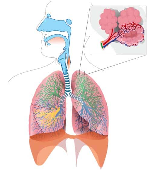 The trachea, bronchi and bronchioles form the tracheobronchial tree – a system of airways that allow passage of air into the lungs, where gas exchange occurs. These airways are located in the neck and thorax. In this article we will look at the anatomical position, structure and neurovascular supply of the airways; as well as considering their clinical relevance. Pro Feature - 3D Model You've Discovered a Pro Feature Access our 3D Model Library Explore, cut, dissect, annotate and manipulate our 3D models to visualise anatomy in a dynamic, interactive way. Learn More The Trachea Anatomical Position The trachea marks the beginning of the tracheobronchial tree. It arises at the lower border of cricoid cartilage in the neck, as a continuation of the larynx. It travels inferiorly into the superior mediastinum, bifurcating at the level of the sternal angle (forming the right and left main bronchi). As it descends, the trachea is located anteriorly to the oesophagus, and inclines slightly to the right. By Bibi Saint-Pol [CC BY-SA 3.0], via Wikimedia Commons Fig 1Overview of the tracheobronchial tree. Key: Green – upper lobe, yellow – middle lobe, blue – lower lobe Structure The trachea, like all of the larger respiratory airways, is held open by cartilage – here in C-shaped rings. The free ends of these rings are supported by the trachealis muscle. The trachea and bronchi are lined by ciliated pseudostratified columnar epithelium, interspersed by goblet cells, which produce mucus. The combination of sweeping movements by the cilia and mucus from the goblet cells forms the functional mucociliary escalator. This acts to trap inhaled particles and pathogens, moving them up out of the airways to be swallowed and destroyed. At the bifurcation of the primary bronchi, a ridge of cartilage called the carina runs anteroposteriorly between the openings of the two bronchi. This is the most sensitive area of the trachea for triggering the cough reflex, and can be seen on bronchoscopy. Neurovascular Supply The trachea receives sensory innervation from the recurrent laryngeal nerve. Arterial supply comes from the tracheal branches of the inferior thyroid artery, while venous drainage is via the brachiocephalic, azygos and accessory hemiazygos veins. Pro Feature - Dissection Images Contents of the superior mediastinum. Contents of the superior mediastinum. You've Discovered a Pro Feature Access our Dissection Image Library Enhance your understanding with high-resolution dissection images showcasing real-life anatomy. Learn More Bronchi At the level of the sternal angle, the trachea bifurcates into the right and left main bronchi. They undergo further branching to produce the secondary bronchi. Each secondary bronchi supplies a lobe of the lung, and gives rise to several segmental bronchi. Along with branches of the pulmonary artery and veins, the main bronchi make up the roots of the lungs. Structure Right main bronchus – wider, shorter, and descends more vertically than its left-sided counterpart. Clinically, this results in a higher incidence of foreign body inhalation. The right superior lobar bronchus arises before the right main bronchus enters the hilum. Left main bronchus – passes inferiorly to the arch of the aorta, and anteriorly to the thoracic aorta and oesophagus in order to reach the hilum of the left lung. Within the lungs, the main (primary) bronchi branch into lobar (secondary) bronchi. Each secondary bronchi supplies a lobe of the lung, thus there are 3 right lobar bronchi and 2 left. The lobar bronchi then bifurcate into several segmental (tertiary) bronchi, each of which supplies a bronchopulmonary segment. Bronchopulmonary segments are subdivisions of the lung lobes, and act as the functional unit of the lungs. The structure of bronchi are very similar to that of the trachea, though differences are seen in the shape of their cartilage. In the main bronchi, cartilage rings completely encircle the lumen. However in the smaller lobar and segmental bronchi cartilage is found only in crescent shapes. Neurovascular Supply The bronchi derive innervation from pulmonary branches of the vagus nerve (CN X). Blood supply to the bronchi is from branches of the bronchial arteries, while venous drainage is into the bronchial veins. By TeachMeSeries Ltd (2025) Fig 2Transverse section of the trachea, showing its bifurcation. By TeachMeSeries Ltd (2025) Fig 3The trachea and bronchi. Bronchioles The segmental bronchi undergo further branching to form numerous smaller airways – the bronchioles. Structure The smallest airways, bronchioles do not contain any cartilage or mucus-secreting goblet cells. Instead, club cells produce a surfactant lipoprotein which is instrumental in preventing the walls of the small airways sticking together during expiration. Initially there are many generations of conducting bronchioles, which transport air but lack glands and are not involved in gas exchange. Conducting bronchioles then eventually end as terminal bronchioles. These terminal bronchioles branch even further into respiratory bronchioles, which are distinguishable by the presence of alveoli extending from their lumens. Alveoli are tiny air-filled pockets with thin walls (simple squamous epithelium), and are the sites of gaseous exchange in the lungs. Altogether there are around 300 million alveoli in adult lungs, providing a large surface area for adequate gas exchange. Clinical Correlations: Asthma Asthma is a chronic inflammatory disorder of the airways, characterised by hypersensitivity, reversible outflow obstruction and bronchospasm. There is remodelling of the small airways, causing increased smooth muscle thickness around the bronchioles, damaged epithelium and a thickened basement membrane. “Asthma attacks” are acute exacerbations of the condition whereby a trigger (e.g. allergens, exercise) causes sudden inflammation and contraction of the smooth muscle around bronchioles (bronchospasm). T
