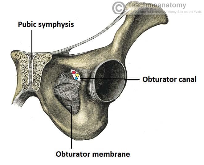 The obturator nerve is a major peripheral nerve of the lower limb. In this article, we shall look at the anatomy of the obturator nerve – its anatomical course, functions and clinical correlations. Pro Feature - 3D Model You've Discovered a Pro Feature Access our 3D Model Library Explore, cut, dissect, annotate and manipulate our 3D models to visualise anatomy in a dynamic, interactive way. Learn More Overview Nerve roots: L2-L4 Motor functions: Innervates the muscles of the medial compartment of the thigh (obturator externus, adductor longus, adductor brevis, adductor magnus and gracilis). Sensory functions: Cutaneous branches of the obturator nerve innervate the skin of the medial thigh. By TeachMeSeries Ltd (2025) Fig 1Derivation of the obturator nerve from the lumbar plexus Pro Feature - Dissection Images Prosection of the muscles of the medial compartment of the thigh. The adductor longus has been divided and reflected back to reveal the underlying structures. The anterior branch of the obturator nerve runs anterior to the adductor brevis. Prosection of the muscles of the medial compartment of the thigh. The adductor longus has been divided and reflected back to reveal the underlying structures. The anterior branch of the obturator nerve runs anterior to the adductor brevis. You've Discovered a Pro Feature Access our Dissection Image Library Enhance your understanding with high-resolution dissection images showcasing real-life anatomy. Learn More Anatomical Course The obturator nerve is formed from the lumbar plexus. It receives fibres from the anterior divisions of L2, L3 and L4. After its formation, the obturator nerve descends through the fibres of the psoas major and emerges from its medial border. It then travels posteriorly to the common iliac arteries and laterally along the pelvic wall – towards the obturator foramen of the pelvis. The obturator nerve enters the medial thigh via the obturator canal (formed within the obturator foramen by the obturator membrane). It then divides into anterior and posterior branches: Anterior division (anterior to the adductor brevis): Descends in a plane between the adductor longus and adductor brevis (towards the femoral artery). Here, it supplies motor fibres to the adductor longus, adductor brevis and gracilis. It can also supply the pectineus muscle. It then pierces the fascia lata to become the cutaneous branch of the obturator nerve. Posterior division (posterior to the adductor brevis): Pierces the obturator externus muscle, and then descends in a plane between the adductor brevis and adductor magnus. Innervates the obturator externus and adductor magnus muscles. By TeachMeSeries Ltd (2025) Fig 2The obturator canal, formed by the obturator membrane within the obturator foramen of the pelvis. By TeachMeSeries Ltd (2025) Fig 3View of the medial thigh, with the course of the obturator nerve highlighted. Motor Functions The obturator nerve innervates all the muscles in the medial compartment of the thigh – except the hamstring part of the adductor magnus (innervated by the tibial nerve). They are collectively known as the hip adductors: Adductor longus – adducts thigh Adductor brevis – adducts thigh Adductor magnus: Adductor part – adducts and flexes thigh Hamstring part – extends thigh Gracilis – adducts thigh Obturator externus – laterally rotates thigh By TeachMeSeries Ltd (2025) Fig 4Muscles of the medial thigh. The overlying muscles in the anterior compartment have been removed. Sensory Function The cutaneous branch of the obturator nerve supplies the skin of the middle part of the medial thigh. By TeachMeSeries Ltd (2025) Fig 5Image of the cutaneous distribution of the anterior thigh, with the area supplied by the obturator nerve highlighted. Clinical Relevance Damage to the Obturator Nerve The obturator nerve can be damaged during surgery involving the pelvis or abdomen. Symptoms include numbness and paraesthesia on the medial aspect of the thigh and weakness in adduction of the thigh. Alternatively, the patient could present with posture and gait problems due to the loss of adduction. Obturator Nerve Block Obturator nerve block is used in the management of pain after lower limb surgery or for chronic hip pain. The anaesthetic is injected inferior to the pubic tubercle and lateral to the tendon of the adductor longus muscle. This procedure can also be carried out under ultrasound guidance. Do you think you’re ready? Take the quiz below Pro Feature - Quiz The Obturator Nerve Question 1 of 3 Submitting... Skip Next Rate question: You scored 0% Skipped: 0/3 1800 More Questions Available Upgrade to TeachMeAnatomy Pro Challenge yourself with over 1800 multiple-choice questions to reinforce learning Learn More Rate This Article