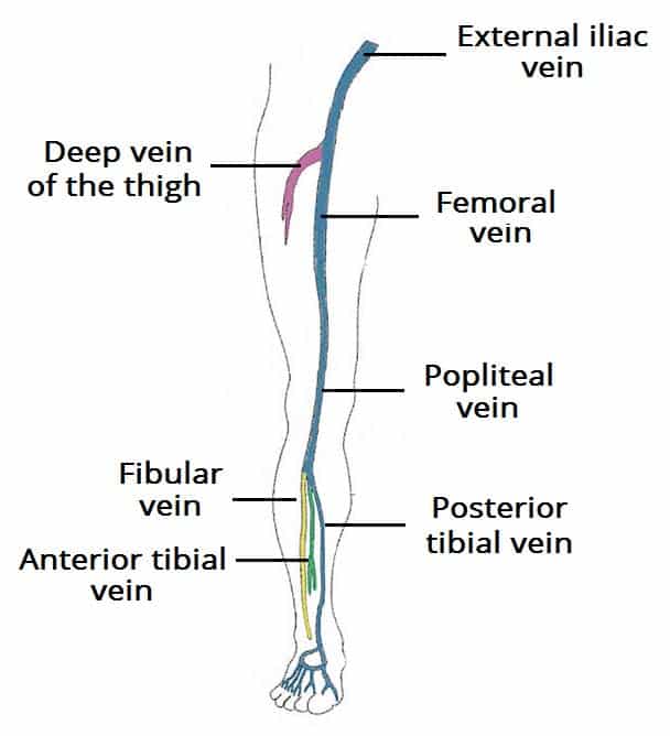 The veins of the lower limb drain deoxygenated blood and return it to the heart. They can be divided into two groups – deep and superficial: Deep veins are located underneath the deep fascia of the lower limb, accompanying the major arteries. Superficial veins are found in the subcutaneous tissue. They eventually drain into the deep veins. In this article, we shall examine the anatomy and clinical correlations of the major veins of the lower limb. Pro Feature - 3D Model You've Discovered a Pro Feature Access our 3D Model Library Explore, cut, dissect, annotate and manipulate our 3D models to visualise anatomy in a dynamic, interactive way. Learn More Deep Veins of the Lower Limb The deep venous drainage system of the lower limb is located beneath the deep fascia of the lower limb. As a general rule, the deep veins accompany and share the name of the major arteries in the lower limb. Often, the artery and vein are located within the same vascular sheath – so that the arterial pulsations aid the venous return. Foot and Leg The main venous structure of the foot is the dorsal venous arch, which mostly drains into the superficial veins. Some veins from the arch penetrate deep into the leg, forming the anterior tibial vein. On the plantar aspect of the foot, medial and lateral plantar veins arise. These veins combine to form the posterior tibial and fibular veins. The posterior tibial vein accompanies the posterior tibial artery, entering the leg posteriorly to the medial malleolus. On the posterior surface of the knee, the anterior tibial, posterior tibial and fibular veins unite to form the popliteal vein. The popliteal vein enters the thigh via the adductor canal. Thigh Once the popliteal vein has entered the thigh, it is known as the femoral vein. It is situated anteriorly, accompanying the femoral artery. The deep vein of the thigh (profunda femoris vein) is the other main venous structure in the thigh. Via perforating veins, it drains blood from the thigh muscles. It then empties into the distal section of the femoral vein. The femoral vein leaves the thigh by running underneath the inguinal ligament, at which point it is known as the external iliac vein. Gluteal Region The gluteal region is drained by inferior and superior gluteal veins. These empty into the internal iliac vein. By TeachMeSeries Ltd (2025) Fig 1Overview of the deep veins of the lower limb. Clinical Relevance Deep Vein Thrombosis Deep vein thrombosis (DVT) is the formation of the blood clot within the deep veins of the lower limbs, causing blockage of the vessel. Locally, this causes pain, swelling and tenderness of the affected limb. The main complication of a DVT is pulmonary embolism. The thrombus can become dislodged, and travel into pulmonary circulation. Pulmonary occlusion prevents blood from returning to the heart, resulting in mechanical shock. Patients that are considered high risk of developing a DVT undergo prophylactic treatment to prevent thrombosis. Pro Feature - Dissection Images The borders and contents of the femoral triangle The borders and contents of the femoral triangle You've Discovered a Pro Feature Access our Dissection Image Library Enhance your understanding with high-resolution dissection images showcasing real-life anatomy. Learn More Superficial Veins of the Lower Limb The superficial veins of the lower limb run in the subcutaneous tissue. There are two major superficial veins – the great saphenous vein, and the small saphenous vein. Long Saphenous Vein The long saphenous vein is formed by the dorsal venous arch of the foot, and the dorsal vein of the great toe. It ascends up the medial side of the leg, passing anteriorly to the medial malleolus at the ankle, and posteriorly to the medial condyle at the knee. As the vein moves up the leg, it receives tributaries from other small superficial veins. The great saphenous vein terminates by draining into the femoral vein immediately inferior to the inguinal ligament. Surgically, the great saphenous vein can be harvested and used as a vessel in coronary artery bypasses. Small Saphenous Vein The small saphenous vein is formed by the dorsal venous arch of the foot, and the dorsal vein of the little toe. It moves up the posterior side of the leg, passing posteriorly to the lateral malleolus, along the lateral border of the calcaneal tendon. At the level of the knee, the short saphenous vein passes between the two heads of the gastrocnemius muscle and empties into the popliteal vein in the popliteal fossa. By TeachMeSeries Ltd (2025) Fig 2The two major superficial veins of the lower limb. Clinical Relevance Varicose Veins In the lower limbs, venous blood flows from the skin to superficial veins, which drain into the deep veins. With the veins there are valves that prevent back flow of blood. If these valves become incompetent, blood can flow back into the superficial veins. This results in an increased intra-luminal pressure, which the veins cannot withstand, causing them to become dilated and tortuous. This condition is known as varicose veins. There are various soft tissue changes that can occur with chronic varicose veins. Due to the incompetence of the valves, the pressure in the venous system rises. This damages the cells, causing blood to extrude into skin. Further complications can produce a brown pigmentation and ulceration of the surrounding tissue. Varicose veins can be treated by; Thermal ablation – heating the vein from inside (via radiofrequency or laser catheters), causing irreversible damage to the vein which closes it off. Vein ligation, stripping, and avulsion – making an incision in the groin (or popliteal fossa) and identifying the responsible vein, before tying it off and stripping it away. Foam sclerotherapy – injecting a sclerosing (irritating) agent directly into the varicosed veins, causing an inflammatory response that closes off the vein. By Jackerhack [CC-BY-SA-2.5], from Wikimedia Commons Fig 3Varicose veins on 
