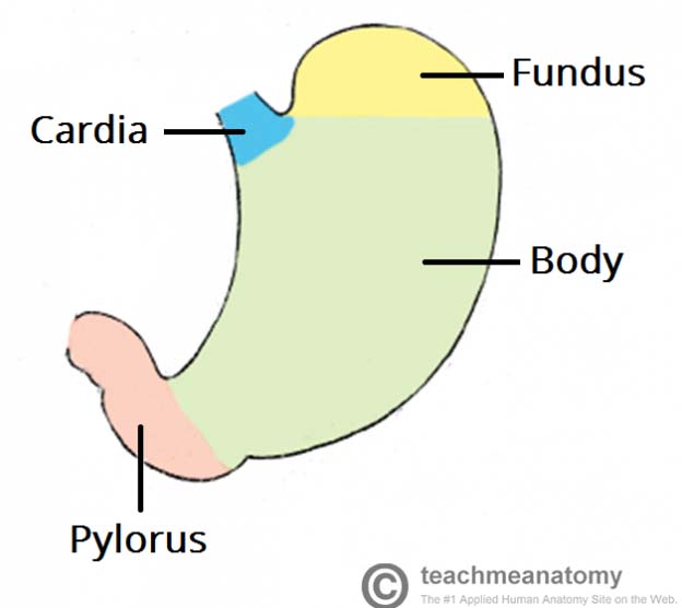 The stomach is located between the oesophagus and the duodenum. After food enters the stomach, the muscular walls of the stomach act to mix the food and liquid with digestive juices. The contents of the stomach, called chyme, are then emptied into the small intestine.