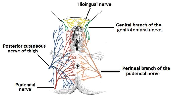 The vulva (pudendum) refers to the external female genitalia. Its functions are threefold: Acts as sensory tissue during sexual intercourse Assists in micturition by directing the flow of urine Protects the internal female reproductive tract from infection. In this article, we shall look at the anatomy of the vulva – its structure, blood supply and innervation. Pro Feature - 3D Model You've Discovered a Pro Feature Access our 3D Model Library Explore, cut, dissect, annotate and manipulate our 3D models to visualise anatomy in a dynamic, interactive way. Learn More Structures of the Vulva The vulva is a collective term for several anatomical structures: Mons pubis – a subcutaneous fat pad located anterior to the pubic symphysis. It formed by the fusion of the labia majora. Labia majora – two hair-bearing external skin folds. They extend from the mons pubis posteriorly to the posterior commissure (a depression overlying the perineal body). Embryologically derived from labioscrotal swellings Labia minora – two hairless folds of skin, which lie within the labia majora. They fuse anteriorly to form the hood of the clitoris and extend posteriorly either side of the vaginal opening. They merge posteriorly, creating a fold of skin known as the fourchette. Embryologically derived from urethral folds Vestibule – the area enclosed by the labia minora. It contains the openings of the vagina (external vaginal orifice, vaginal introitus) and urethra. Bartholin’s glands – secrete lubricating mucus from small ducts during sexual arousal. They are located either side of the vaginal orifice. Clitoris – located under the clitoral hood. It is formed of erectile corpora cavernosa tissue, which becomes engorged with blood during sexual stimulation. Embryologically derived from the genital tubercle Adapted from work by Cancer Research UK [CC BY-SA 4.0] Fig 1The major structures of the vulva (external female genitalia). Kostis Gyftopoulos MD, PhD Fig 2The external female genitalia. Clinical Relevance Infection of Bartholin’s Glands The Bartholin’s glands (also known as the greater vestibular glands) can become infected and inflamed – known as bartholinitis. This is initially treated with antibiotics, but occasionally can be complicated by the formation of a cyst or abscess. In case of an infected cyst or abscess, the only effective treatment is surgical drainage or excision of the lesion. By Medimage [CC-BY-SA-3.0], via Wikimedia Commons Fig 3Right sided Bartholin’s cyst, caused by blockage of the Bartholin’s gland ducts. Vascular Supply and Lymphatics The arterial supply to the vulva is from the paired internal and external pudendal arteries (branches of the internal iliac artery and femoral artery, respectively). Venous drainage is achieved via the pudendal veins, with smaller labial veins contributing as tributaries. Lymph drains to the nearby superficial inguinal lymph nodes. Innervation The vulva receives sensory and parasympathetic nervous supply. To describe the sensory distribution, the vulva can be divided into anterior and posterior sections: Anterior – ilioinguinal nerve, genital branch of the genitofemoral nerve Posterior – pudendal nerve, posterior cutaneous nerve of the thigh. The clitoris and the vestibule also receive parasympathetic innervation from the cavernous nerves – derived from the uterovaginal plexus. By TeachMeSeries Ltd (2025) Fig 4Cutaneous innervation the skin of the vulva and perineum Clinical Relevance Vulval Warts Genital warts are benign growths of epithelium caused by certain HPV types, such as 6 & 11. They are highly infectious and are easily transmitted between sexual partners through sexual or even physical contact. However they do NOT evolve into cancerous lesions. Other strains of HPV (most commonly high-risk types 16 & 18) may predispose affected individuals to dysplastic changes in the cervix, vagina and/or anus which can potentially lead to carcinoma. Recently developed HPV vaccines are safe and efficient in preventing high-risk HPV infections. Do you think you’re ready? Take the quiz below Pro Feature - Quiz The Vulva Question 1 of 3 Submitting... Skip Next Rate question: You scored 0% Skipped: 0/3 1800 More Questions Available Upgrade to TeachMeAnatomy Pro Challenge yourself with over 1800 multiple-choice questions to reinforce learning Learn More Rate This Article