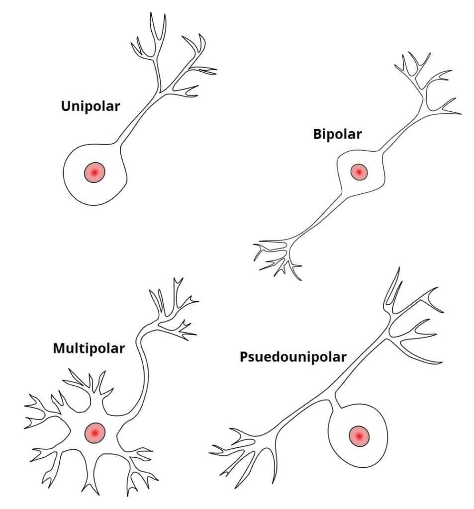 The nervous system allows us to perceive, understand, and respond to our environment. It comprises two different types of cells: Nerve cells (neurones) – these form the functional basis of the nervous system, responsible for transmitting signals as electrical or chemical signals. Glial cells – these provide functional and structural support for the neurones. One example is a Schwann cell, which produces the lipid sheath of peripheral neurones. In this article, we will focus on the ultrastructure of nerves. We will look at the general structure of nerves, their layers of connective tissue and finish by considering some conditions that arise when the normal structure is lost. Pro Feature - 3D Model You've Discovered a Pro Feature Access our 3D Model Library Explore, cut, dissect, annotate and manipulate our 3D models to visualise anatomy in a dynamic, interactive way. Learn More Neuronal Structure There are several different types of neurones found in the nervous system. They all contain the same key structural components – the cell body, dendrites, the axon and the axon terminals. Cell Body The cell body holds the nucleus. It is the site of protein synthesis, which occurs on small granules of rough endoplasmic reticulum called nissl substance. In the nervous system, many neuronal cell bodies can group together to form a distinct structure. In the CNS, this is known as a nucleus, and in the PNS as a ganglion. Dendrites The dendrites are elongated portions of the cell body. They extend outwards, receiving input from the environment and from other neurones. Axons The axon is a long, thin structure down which action potentials (the nerve impulse) are conducted. Whilst neurones have many dendrites, most cells only have one axon. Each axon is coated in myelin – a layer of insulating lipid. Myelin is formed by cells wrapping themselves around the nerve axon. In the CNS, this is performed by oligodendrocyte cells. In the PNS, Schwann cells are responsible for this action. There are gaps between the myelin sheaths formed by different cells. These gaps are known as nodes of Ranvier. They allow for saltatory conduction of impulses. Axon Terminals The axon terminal is the most distal part of the axon. It is from here that the neurone sends chemical signals to other cells – usually via neurotransmitter release. To facilitate the secretion of neurotransmitters, the axon terminals contain a large number of mitochondria. By Quasar Jarosz [CC-BY-SA-3.0], via Wikimedia Commons Fig 1The components of a typical neurone. Coverings In the peripheral nervous system, the axons of neurons are grouped together to form nerves. The axons are enclosed by several connective tissue layers: Endoneurium – Surrounds the axon of an individual neurone. Perineurium – Surrounds a fascicle, which is a collection of neurones. Epineurium – Surrounds the entire nerve, which is formed by a collection of fascicles. It contains numerous small blood vessels, which supply the nerve fibres. By TeachMeSeries Ltd (2025) Fig 2Connective tissue layers of a nerve cell. Classification Neurones can be classified by structure or by function. Neurones with different functions have differing structures, which is visible histologically. Structural Classification Neurones can be either unipolar, pseudounipolar, bipolar or multipolar. Unipolar – Here the cell body is at one end of a single unbranched axon, and there are no dendrites. These can be found in the cochlear nucleus of the brain. Pseudounipolar – They have one axon which is divided into two branches by the presence of the cell body. Sensory neurones are all pseudounipolar. Bipolar – These neurones have two processes arising from a central cell body – typically one axon and one dendrite. These cells are found in the retina. Multipolar – They have one axon and many dendrites, with a cell body displaced to one side of the axon. Motor neurones are a prime example of this. By Juoj8 [CC-BY-SA-3.0], via Wikimedia Commons Fig 3Structural classification of neurones. Functional Classification There are three broad functional classifications of nerves – sensory (afferent), intermediate and motor (efferent). There are key structural differences between these three types: Sensory nerves – small axons and psuedounipolar structure. Motor nerves – larger axons and multipolar structure. Intermediate neurones – central cell body and many dendrites. Sensory and motor nerves are located within the PNS, whereas intermediate nerves are found in the CNS. Clinical Relevance Disorders of Nerve Tissue Multiple Sclerosis In multiple sclerosis, the myelin covering of neurones in the central nervous system is lost. This means that the relay of action potentials between sensory and motor neurones is affected. This can lead to visual, motor and auditory problems. The etiology of Multiple Sclerosis (MS) is still uncertain. However, the causes are thought to either be as a result of autoimmune destruction of myelin, or the failure of oligodendrocytes to myelinate the interneurons. Motor Neurone Disease Motor Neurone Disease describes a group of conditions that include Amyotrophic lateral sclerosis, better known as ALS. In these diseases, motor neurones become damaged for reasons that are not entirely clear, but are thought to include dysfunctional mitochondria. The damage to the motor neurones is progressive, making this a degenerative disease. It often begins with damage to peripheral nerves, and works its way up through the limbs until the central nervous system is compromised. This disease is fatal, with a median survival length of 3-5 years post diagnosis. By Marvin 101 (Own work) [CC-BY-SA-3.0], via Wikimedia Commons Fig 4Photomicrograph of a demyelinating MS-Lesion. Do you think you’re ready? Take the quiz below Pro Feature - Quiz Ultrastructure of Nerves Question 1 of 3 Submitting... Skip Next Rate question: You scored 0% Skipped: 0/3 1800 More Questions Available Upgrade to Tea