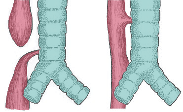 The function of the respiratory system can be divided into two parts: the conducting portion and the respiratory portion. The conducting portion conveys, moistens, and warms the air from outside the body as it makes its way to the lungs. The exchange of gas occurs at the respiratory portion. Structurally, the respiratory system is divided into the upper and lower respiratory tracts/systems. The upper respiratory system consists of the nasal cavity, oral cavity, pharynx and their associated structures. The lower respiratory system consists of the trachea, bronchi, bronchioles and alveoli. It develops relatively late in the embryo – which can cause problems when babies are born prematurely. In this article, we will discuss the development of the respiratory tract and its clinical correlations. Pro Feature - 3D Model You've Discovered a Pro Feature Access our 3D Model Library Explore, cut, dissect, annotate and manipulate our 3D models to visualise anatomy in a dynamic, interactive way. Learn More Initial Development The respiratory system is derived from the primitive gut tube – the precursor to the gastrointestinal tract. The gut tube is an endodermal structure which forms when the embryo undergoes lateral folding during the early embryonic period. At approximately week 4 of development, an out-pocketing appears in the proximal part of the primitive gut tube (the foregut) – this is known as the respiratory diverticulum. Initially, the respiratory diverticulum is continuous with the foregut; but this is not functionally suitable. The formation of a longitudinal ridge known as the tracheoesophageal septum rectifies this to make the two structures compatible with life. The diverticulum bifurcates into two buds, which become the left and right primary bronchi. The primary bronchi then proliferate to give rise to secondary and tertiary bronchi. By OpenStax [CC BY 4.0], via Wikimedia Commons Fig 1Initial development of the lower respiratory tract. Clinical Relevance Tracheoesophageal Fistula A tracheoesophageal fistula is a direct connection between the trachea and the oesophagus. It can arise as a complication of surgical procedures or can be congenital. Congenital cases occur if the tracheoesophageal septum fails to form fully, or forms abnormally – and leaves the trachea in continuity with the oesophagus. Common abnormalities include: Oesophagus empties into the trachea Oesophagus is blind ended proximally and arises from the carina distally The presentation therefore varies. The infant may become cyanosed during feeding or may vomit/regurgitate food. Management is usually through the surgical resection of the fistula, and the anastomosis of any discontinuous segments. By Lewis Spitz [CC BY 2.0], via Wikimedia Commons Fig 2Common types of tracheoesophageal fistulae. Ongoing Development Pseudoglandular Stage: Weeks 8-16 Each bronchopulmonary segment will become a specific portion of the lung, carrying its own tertiary bronchus and branches of the bronchial and pulmonary arteries. During weeks 8-16, the ducts develop within bronchopulmonary segments. Bronchiolar buds branch off from the tertiary bronchi and begin to proliferate. At this stage, as there are no alveoli, there is no gas exchange – and so the lungs are unable to oxygenate blood. However, the lungs are a metabolically active, developing tissue, which means they are able to remove large amounts of oxygen from the blood In order to stop the lungs from starving the body of oxygen, the ductus arteriosus shunts blood from the pulmonary artery directly to the aortic arch. This closes at birth in the vast majority of people. During this stage, the lungs resemble the development of tubuloacinar glands – hence the name. Canalicular Stage: Weeks 16-26 Throughout the canalicular stage, the respiratory bronchioles develop, budding off from the terminal bronchioles formed within the pseudoglandular stage. Despite this, there is still no gas exchange membrane, and so the lungs are not yet functional. Therefore, the prognosis for vast majority of babies born during this stage is not high. Terminal Sac Stage: Week 26 onwards From week 26 onwards, the alveoli develop. Within these alveoli there are two types of cell: Type I pneumocytes – basic simple squamous epithelial cells, which comprise 90% of the alveolus. Type II pneumocytes – simple cuboidal cells which comprise the remaining 10% and are responsible for the production of surfactant. Surfactant is amphipathic, meaning it is able to bind to both hydrophobic and hydrophilic molecules simultaneously. In this case, surfactant binds to water and air within the alveoli. This has the effect of reducing the surface tension. As a result of the reduced surface tension, the alveoli are able to expand to greater volumes at a given pressure. Simply put, surfactant allows us to expand our lungs with minimal effort. Clinical Relevance Respiratory Distress Syndrome If a baby is born prior to the development of type II pneumocytes, they will be unable to produce surfactant. As a result, they will have difficulty expanding their lungs to take their first breath. If a pre-term delivery is unavoidable or inevitable, the mother can be given glucocorticoids to stimulate surfactant production in the fetus. Do you think you’re ready? Take the quiz below Pro Feature - Quiz Development of the Respiratory System Question 1 of 3 Submitting... Skip Next Rate question: You scored 0% Skipped: 0/3 1800 More Questions Available Upgrade to TeachMeAnatomy Pro Challenge yourself with over 1800 multiple-choice questions to reinforce learning Learn More Rate This Article