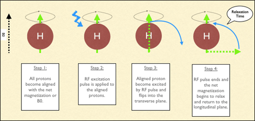 Magnetic resonance imaging (MRI) is arguably the most sophisticated imaging method used in clinical medicine. In recent years, MRI scans have become increasingly common, as costs decrease. In this article, we will outline the basic principles behind MRI scans, how to orientate and interpret a scan, and address some of their advantages and disadvantages compared to other imaging modalities. Pro Feature - 3D Model You've Discovered a Pro Feature Access our 3D Model Library Explore, cut, dissect, annotate and manipulate our 3D models to visualise anatomy in a dynamic, interactive way. Learn More Basic Principles MRI scans work as an imaging method due to the unique make-up of the human body. We are comprised entirely of cells which all contain water – principally made of hydrogen ions (H2O). The magnet embedded within the MRI scanner can act on these positively charged hydrogen ions (H+ ions) and cause them to ‘spin’ in an identical manner. By varying the strength and direction of this magnetic field, we can change the direction of ‘spin’ of the protons, enabling us to build layers of detail. When the magnet is switched off, the protons will gradually return to their original state in a process known as precession. Fundamentally, the different tissue types within the body return at different rates and it is this that allows us to visualise and differentiate between the different tissues of the body. <a href="https://pulseradeducation.com"> Pulse Radiology Education</a> Fig 1MRI scanning is based on the excitation and relaxation of protons. Uses of MRI Scanning Magnetic resonance imaging can produce highly sophisticated and highly detailed images of the human body. Generally speaking, MRI scanning is excellent for visualising soft tissue – and so it is often used in the detection of tumours, strokes and bleeds. It also can be used to visualise the functionality of suspected masses and tumours through IV, gadolinium-based agents. MRI scans have many advantages. As stated previously, they provide excellent detail of the soft tissues of the body, and they do not cause any radiation exposure to the patient. However, they are time consuming – averaging approximately 35-45 minutes to complete. This limits their use in trauma and emergency situations, where CT scanning is often preferred. They are also by far the most expensive of all the imaging modalities available. Factor CT (CT abdo used as example) MRI X-ray (CXR used as example) Ultrasound Duration 3-7 minutes 30-45 min 2-3 min 5-10 minutes Cost Cheaper Expensive Cheap Cheap Dimensions 3 3 2 2 Soft tissue Poor detail Excellent detail Poor detail Poor detail Bone Excellent detail Poor detail Excellent detail Poor detail Radiation 10mSv None 0.15mSv None At present, there are no known long lasting adverse effects from MRI scans. However, MRI safety has recently become a major focus in hospital and outpatient environments due to the potential attraction to ferromagnetic objects and devices. Some medical and implantable devices are considered contraindications for MRI evaluation – such as cardiac pacemakers, heart monitors, defibrillators and other battery-operated devices. Interpreting a MRI Scan Image View MRI scans, much like computed tomography, typically produce three anatomical views; sagittal, coronal and axial (similar to the planes of the body). When interpreting axial views, it is important to appreciate that the image is viewed from the feet upwards – and so the left-hand side of the image refers to the patient’s right (and vice versa). <a href="https://pulseradeducation.com"> Pulse Radiology Education</a> Fig 2The three main views obtained when MRI scanning. Left to right: Sagittal, coronal and axial. Image Weight Once the view of the scan has been determined, the second step is to work out the weight of the image. The magnetic fields produced by the scanner can be manipulated to produce two distinct types of image – T1 weighted and T2 weighted. The resulting images will show different tissue types in different densities: Appearance T1 Weighted Image T2 Weighted Image White Fat Protein Rich Fluid Water Content E.g. Inflammation, Tumour, Haemorrhage, Infection Intermediate Gray Spinal Matter darker than White White Spinal matter darker than gray spinal matter. Dark Bone Air Water Content e.g. Inflamation, Tumour, Haemorrhage Bone Air Fat Note: It can help to remember that a T tWo weighted image shows Water as White. Clinical Relevance Spinal Cord Compression Magnetic resonance imaging can be used to assess the extent of cord compression, when there is a suspicion of stenosis, disc herniation or cauda equina. The figure below shows a T2 weighted, sagittal MRI of the lumbar spine. The thecal sac is easily visible as the 1cm thick white band running posterior to the vertebral bodies. This is interupted at the L4/L5 level by a small round dark area, which is the herniation of the intervertebral disc into the central canal. By TeachMeSeries Ltd (2025) Fig 3Sagittal plane T2 weighted MRI Scan of lumbar spine, demonstrating disc herniation at L4/5 level. Do you think you’re ready? Take the quiz below Pro Feature - Quiz Magnetic Resonance Imaging (MRI) Scanning Question 1 of 2 Submitting... Skip Next Rate question: You scored 0% Skipped: 0/2 1800 More Questions Available Upgrade to TeachMeAnatomy Pro Challenge yourself with over 1800 multiple-choice questions to reinforce learning Learn More Rate This Article