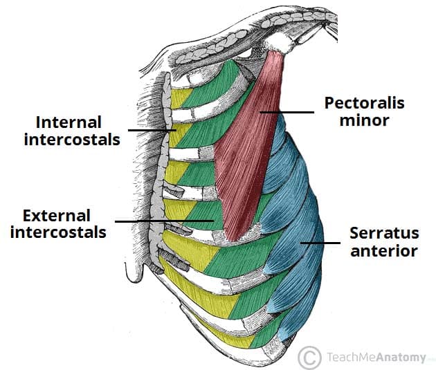 The thorax is bound by bony structures including the 12 pairs of ribs and thoracic vertebrae, whilst also being supported by many ligaments and muscles.